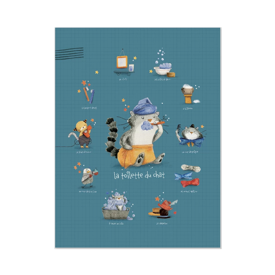 Moulin Roty Affiche Toilette Du Chat 30x40cm