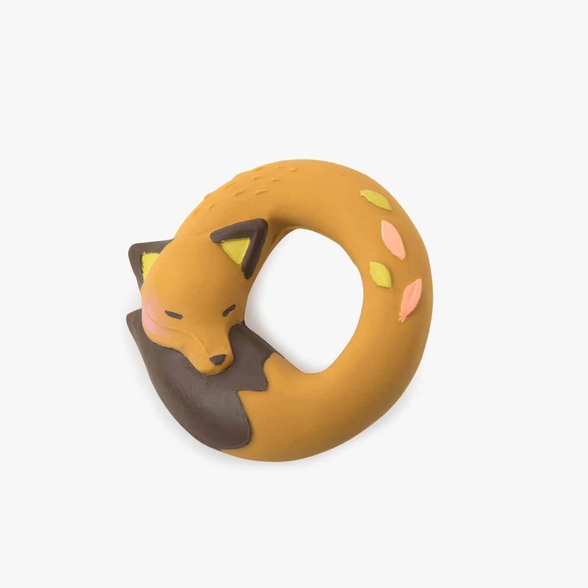 Anneau en caoutchouc 100% naturel, issu de la sève d’Hévéa, avec Chaussette le renard et ses feuilles d’automne. Pour soulager les dents de bébé ou jouer dans le bain, il n’a ni trou ni sifflet pour éviter l’accumulation de saletés à l’intérieur.