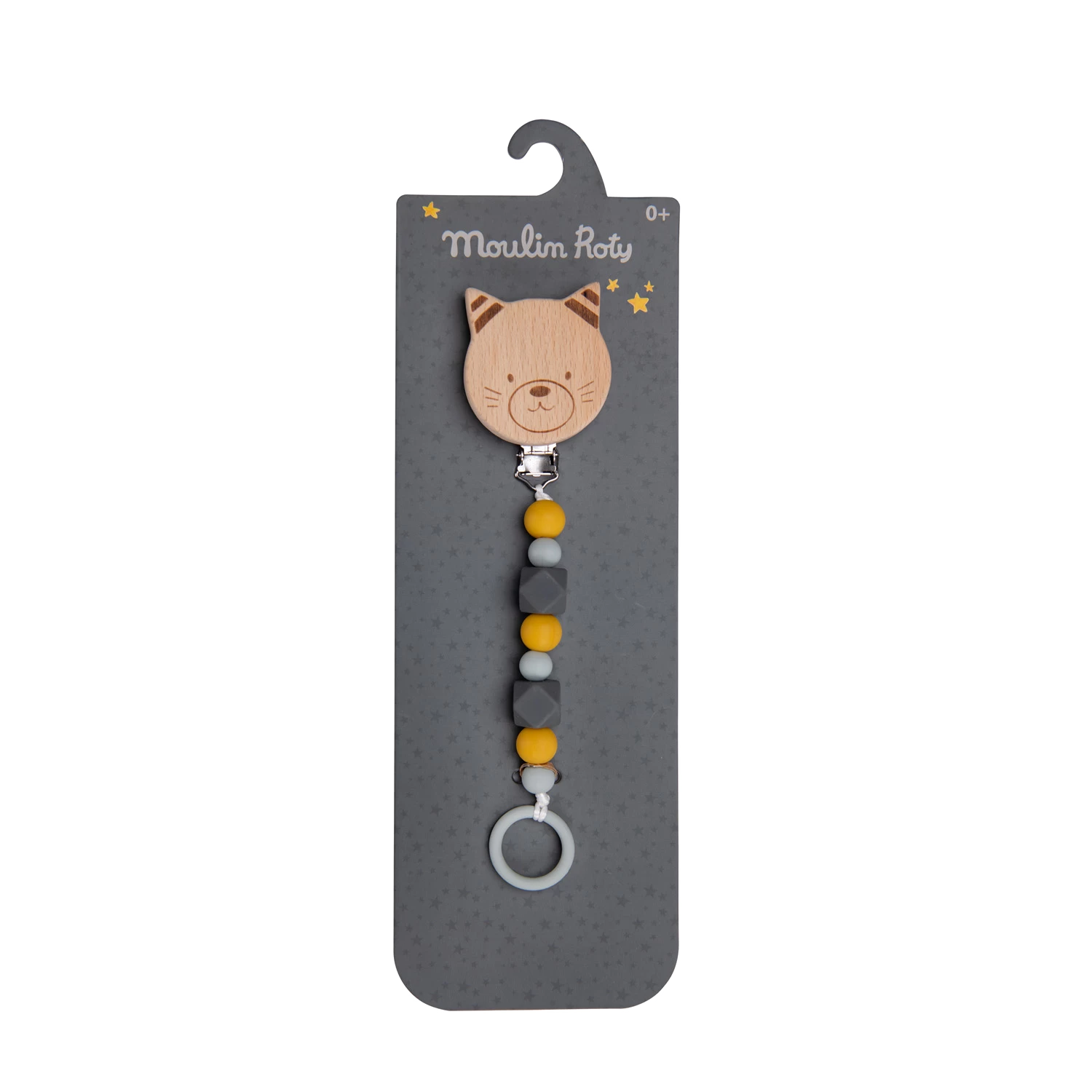 Moulin Roty Attache-tétine Bois Et Silicone Chat