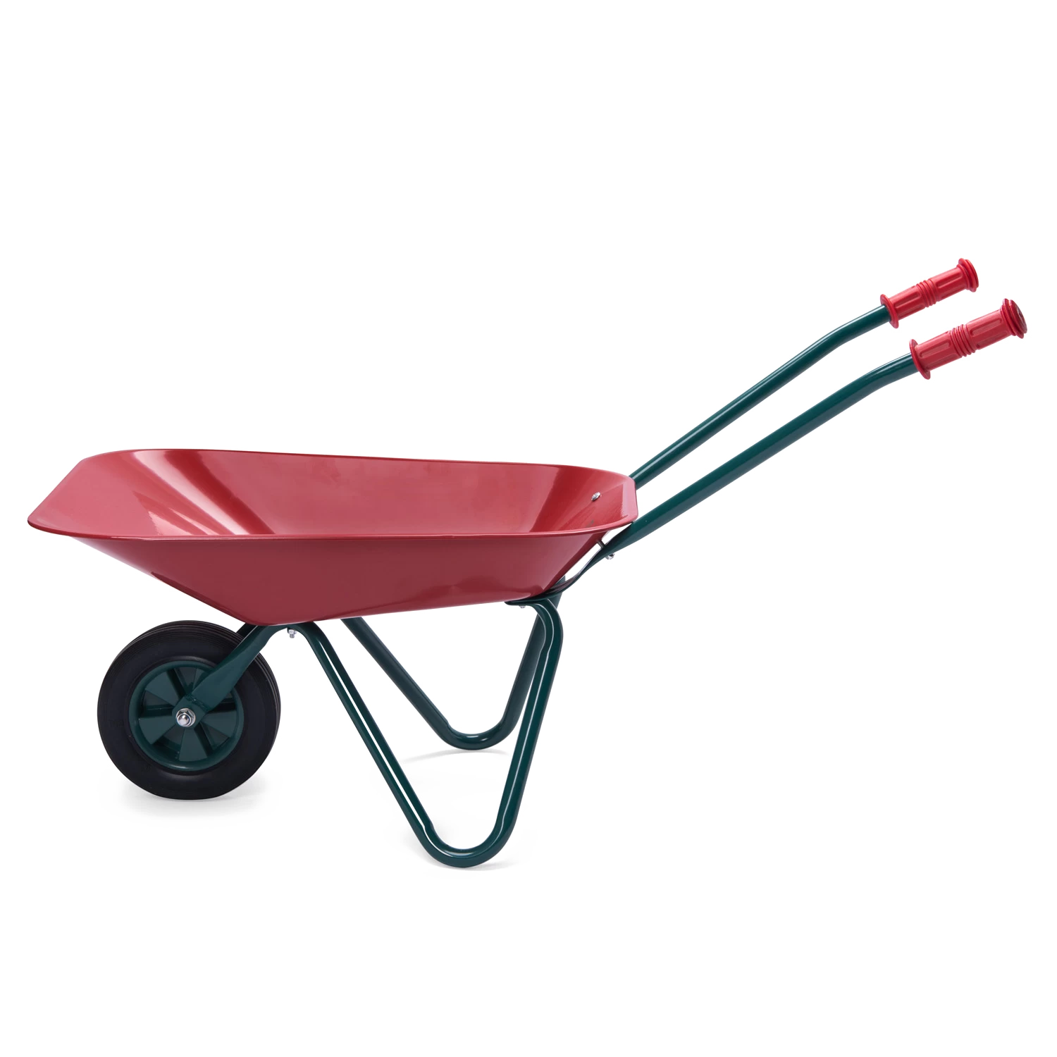 Brouette colorée, légère et solide, avec des poignées basses à hauteur de nos petits jardiniers en herbe, pour qu’ils puissent charger, décharger et transporter facilement tous leurs petits trésors : fleurs, légumes, feuilles, jouets…