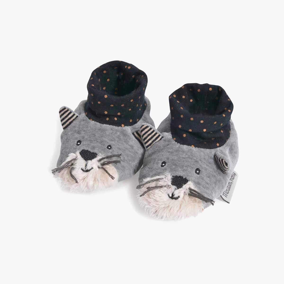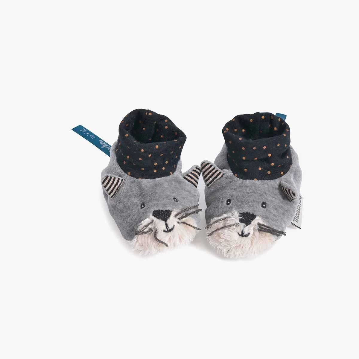 Moulin Roty Chaussons Chat Gris Clair Fernand
