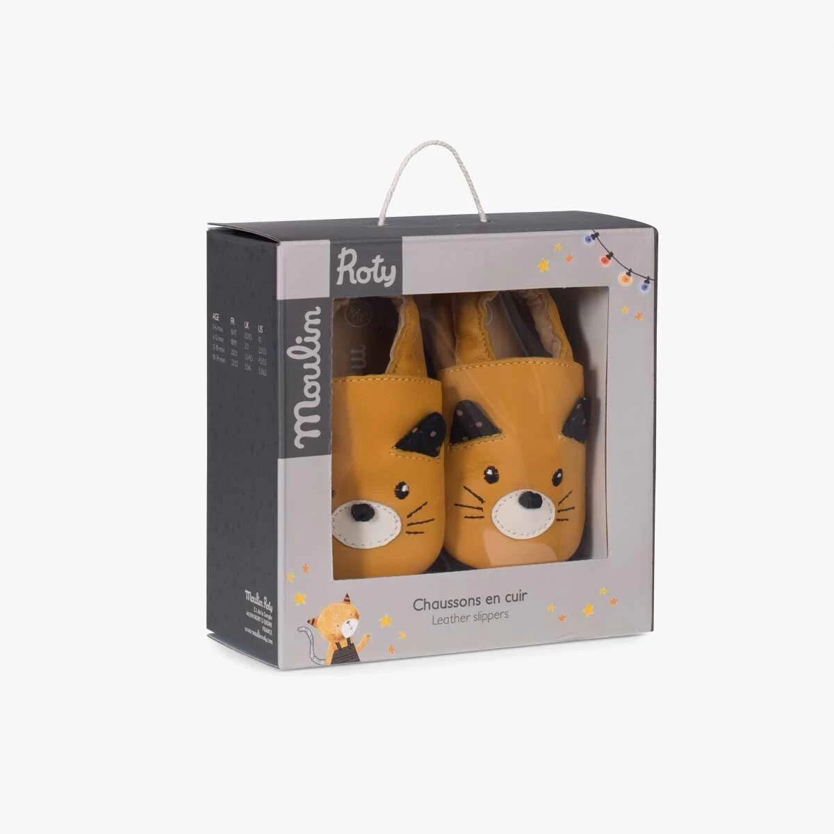 Moulin Roty Chaussons Cuir Chat Moutarde