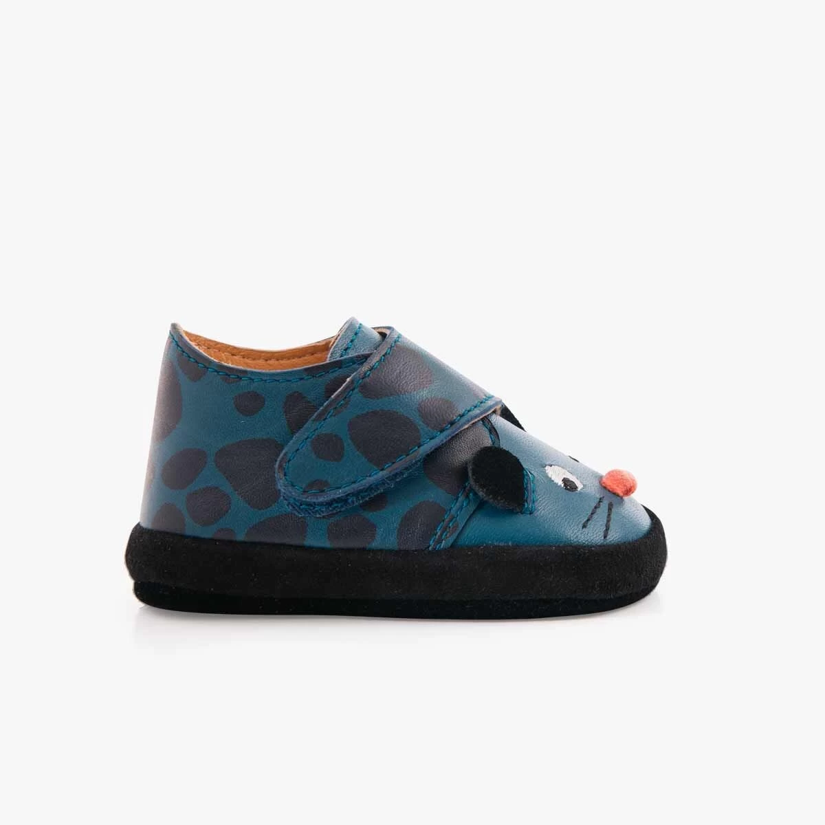 Moulin Roty Chaussons Cuir Panthère Bleu