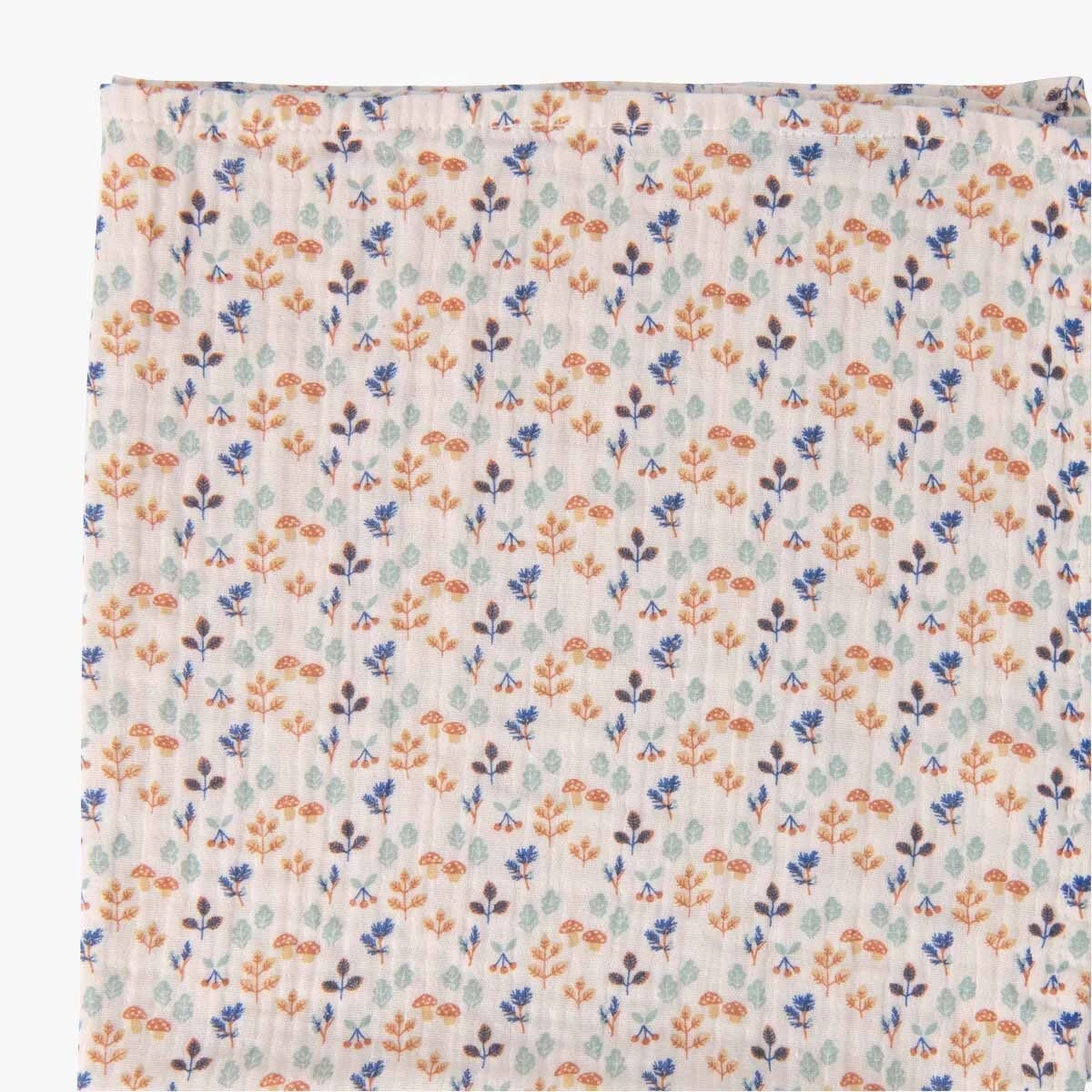 Pour assortir le lit de bébé, drap housse en lange imprimé cueillette 100% coton certifié OEKO-TEX®. Dimensions : 70x140cm.