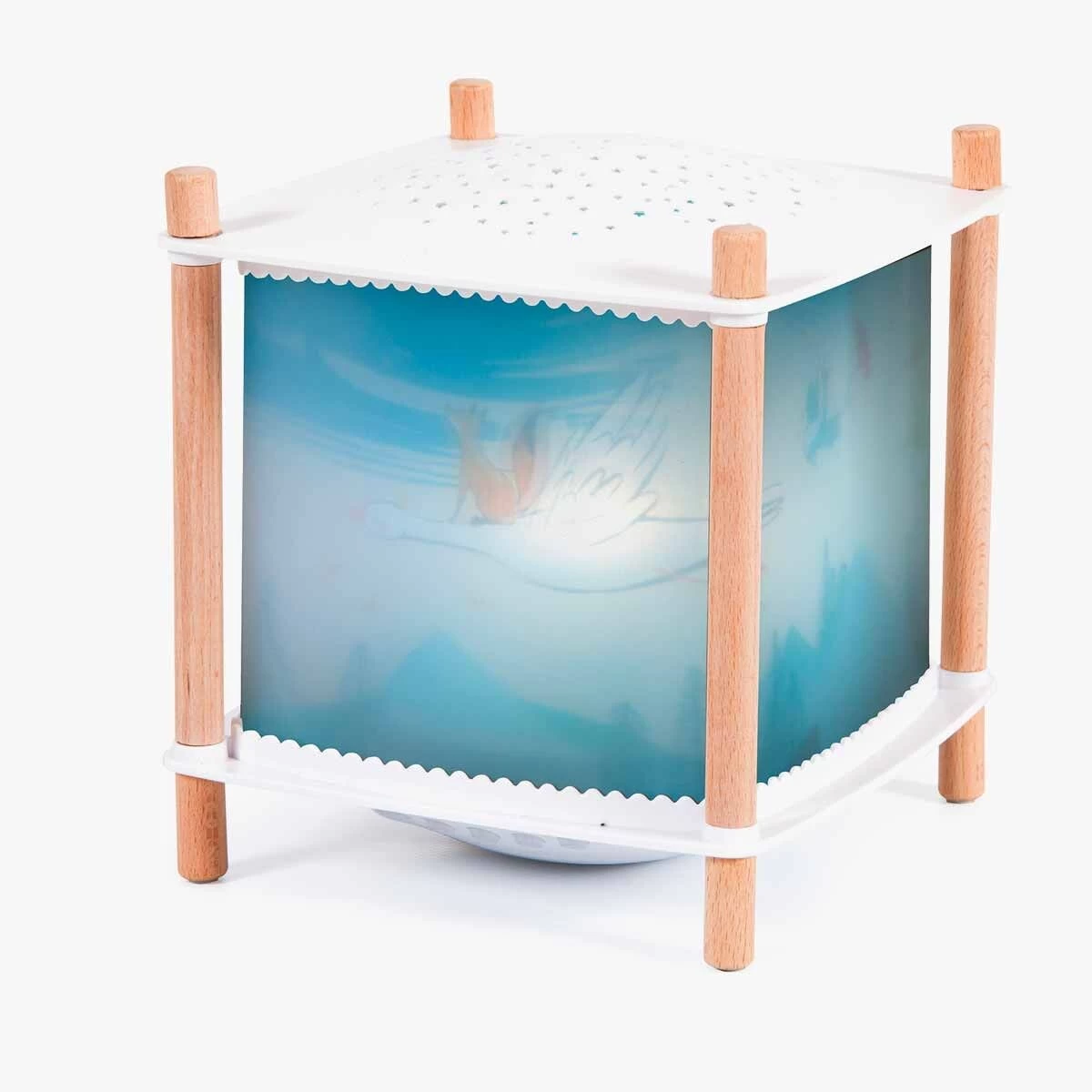 Lanterne magique pour endormir bébé dans l’univers poétique d’Olga. Multifonction, elle projette des étoiles, joue 4 berceuses, se connecte à distance et détecte même les pleurs ! / Câble USB inclus.
