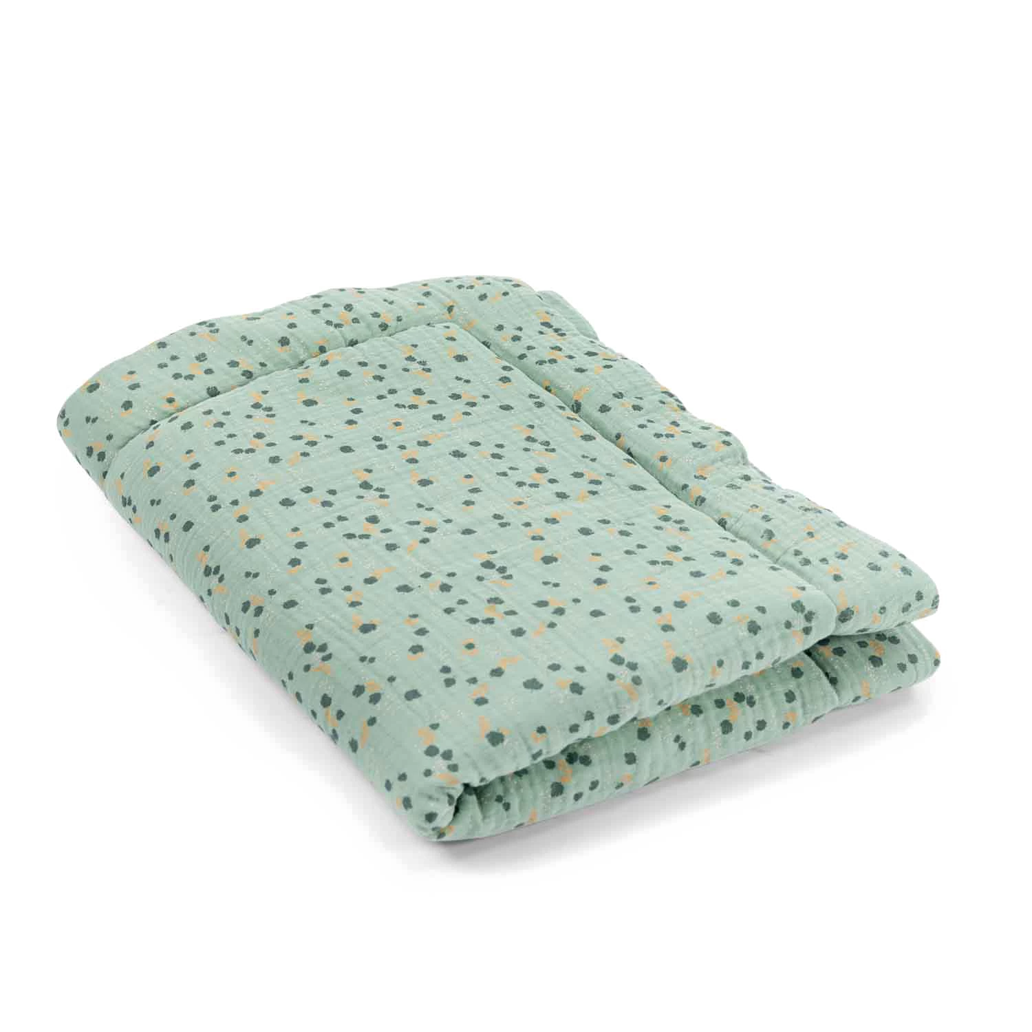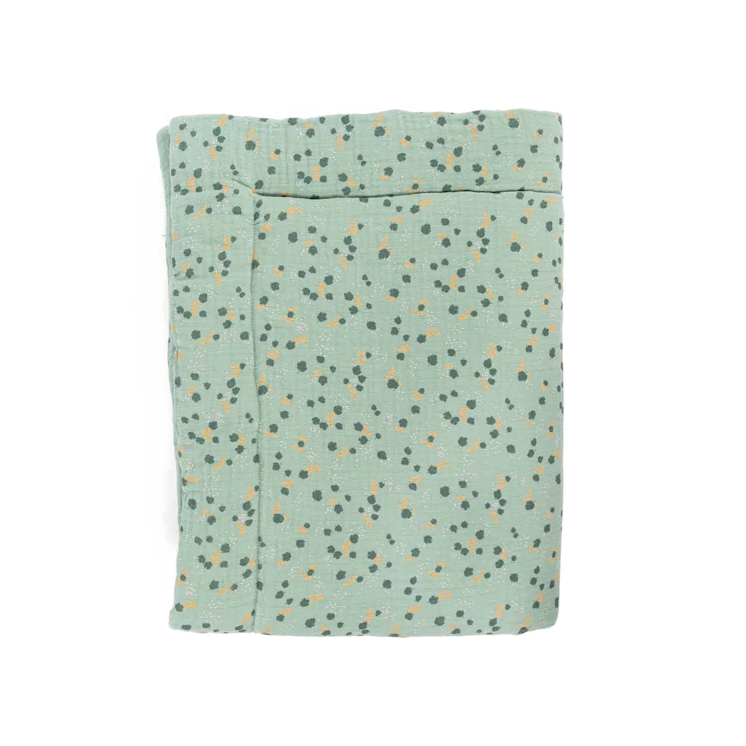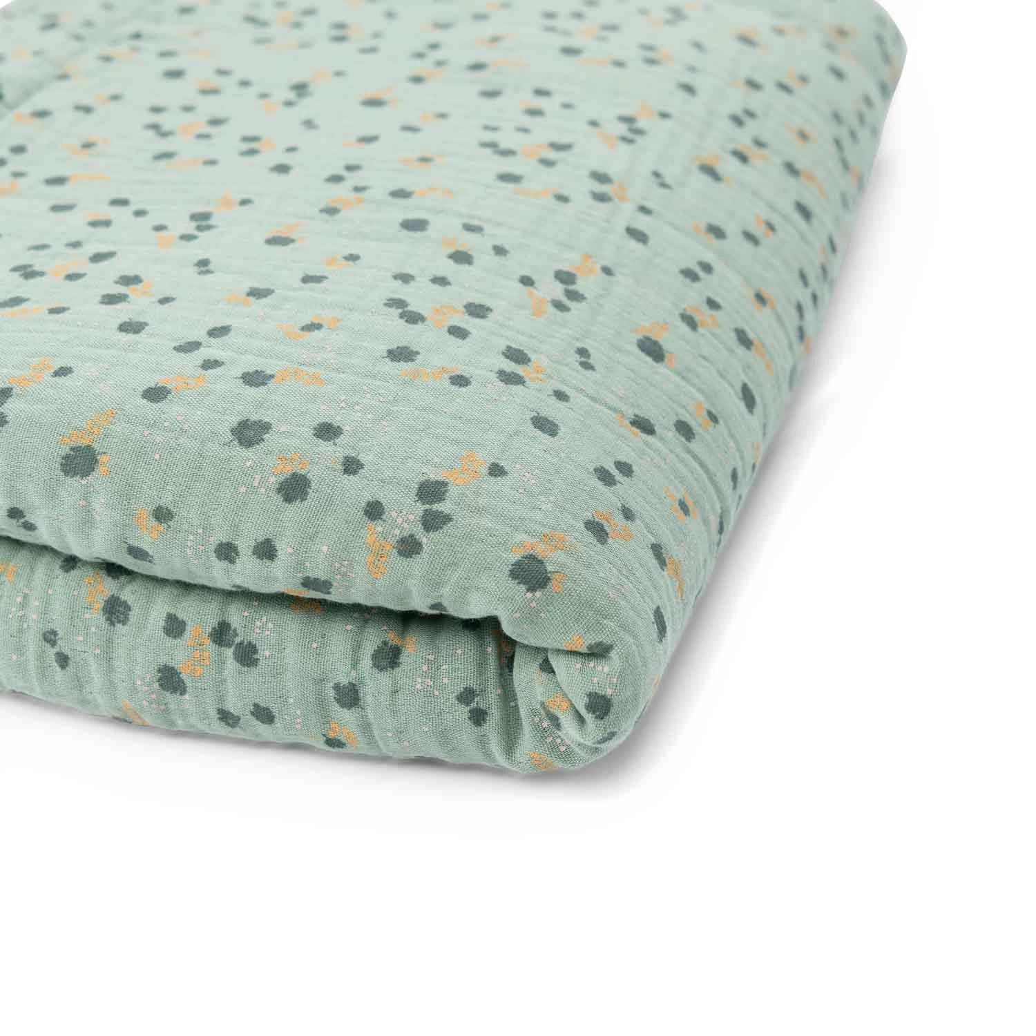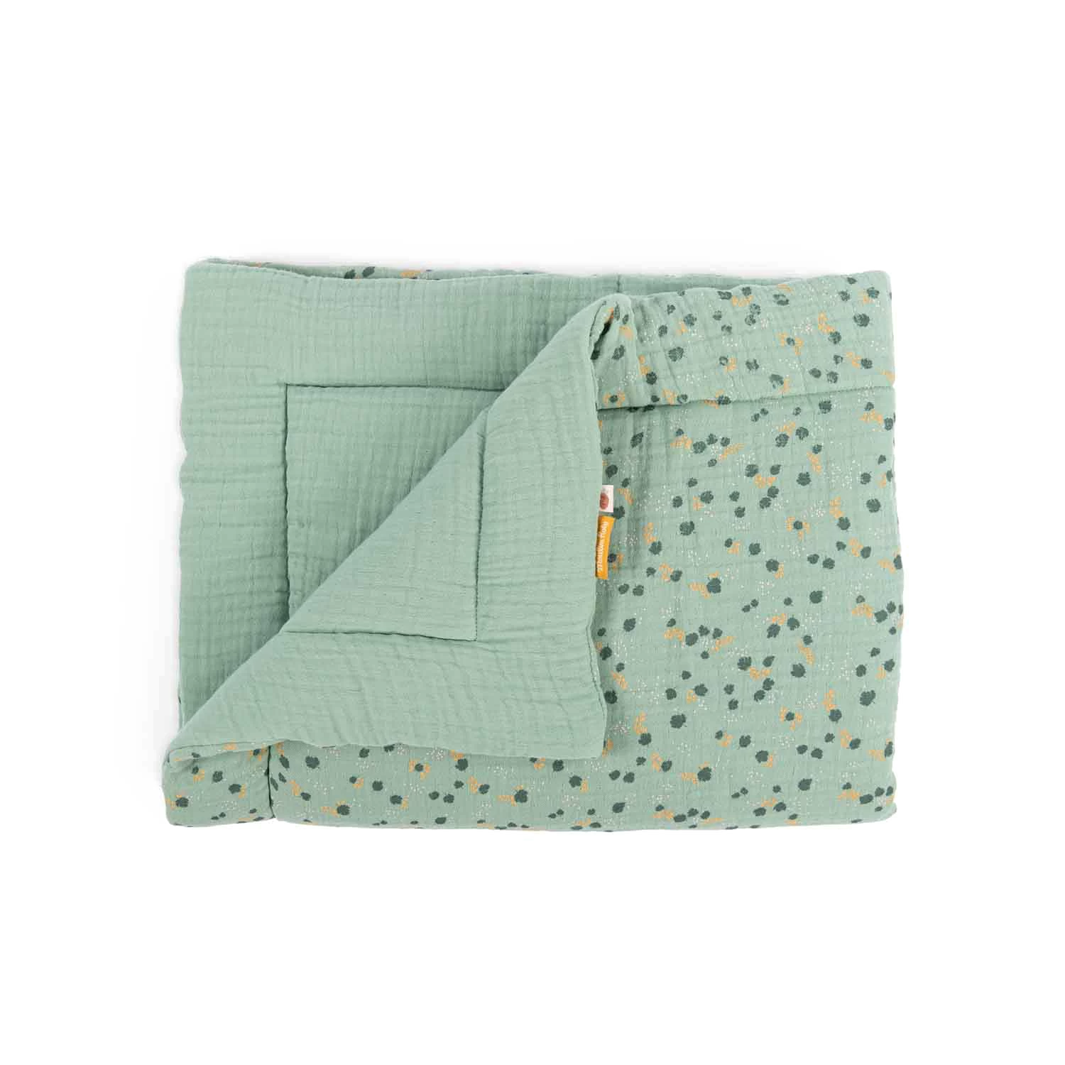 Plaid sauge (90x70cm) en lange certifié OEKO-TEX ® avec motif végétal d’un côté. Doux et moelleux, il accompagnera bébé pour le tenir au chaud, tout en décorant sa chambre !
