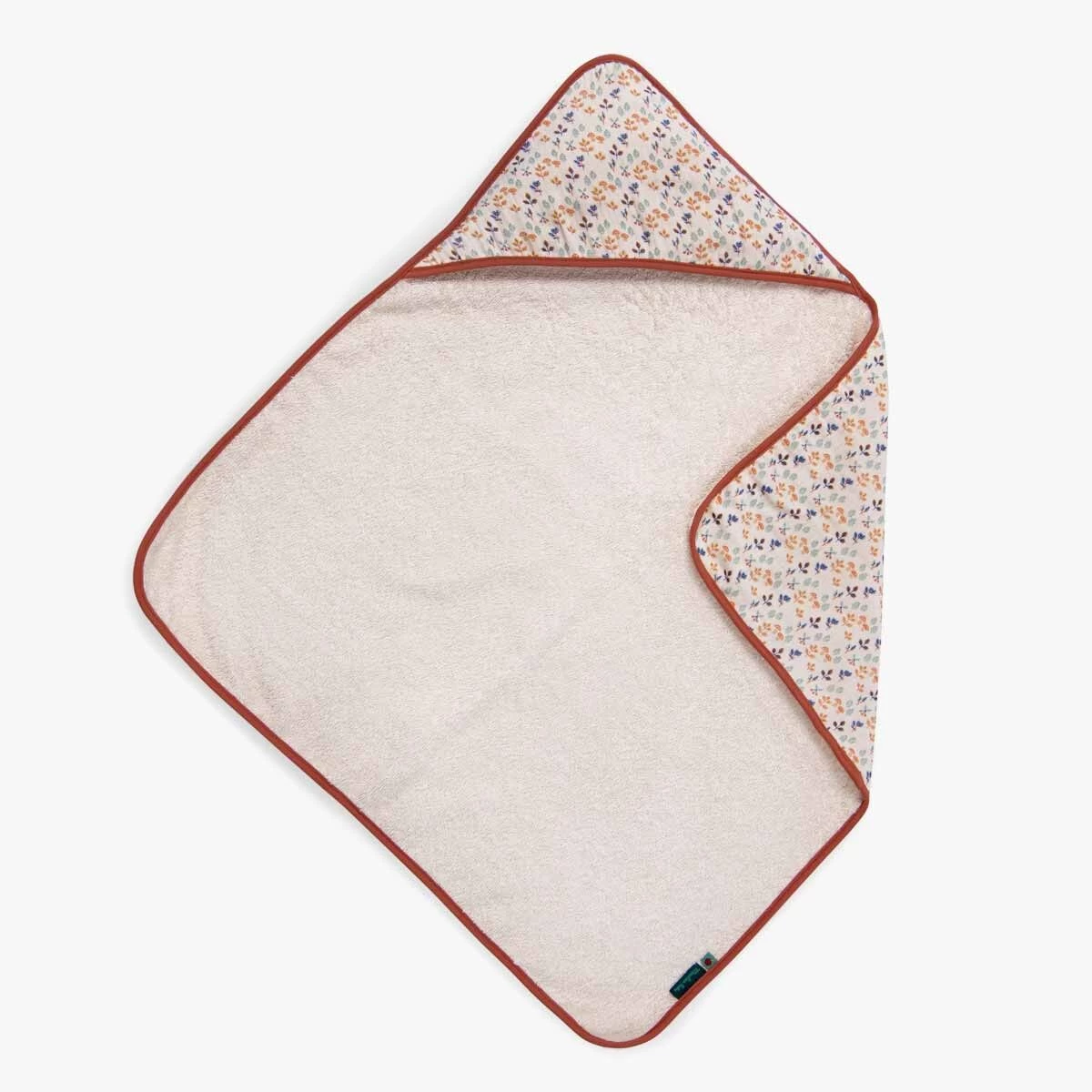 Cape de sortie de bain 100% coton, certifié OEKO-TEX® avec imprimé cueillette pour accueillir chaudement bébé à la sortie du bain. Peut être brodé au prénom de l’enfant. Idéal pour un cadeau naissance.