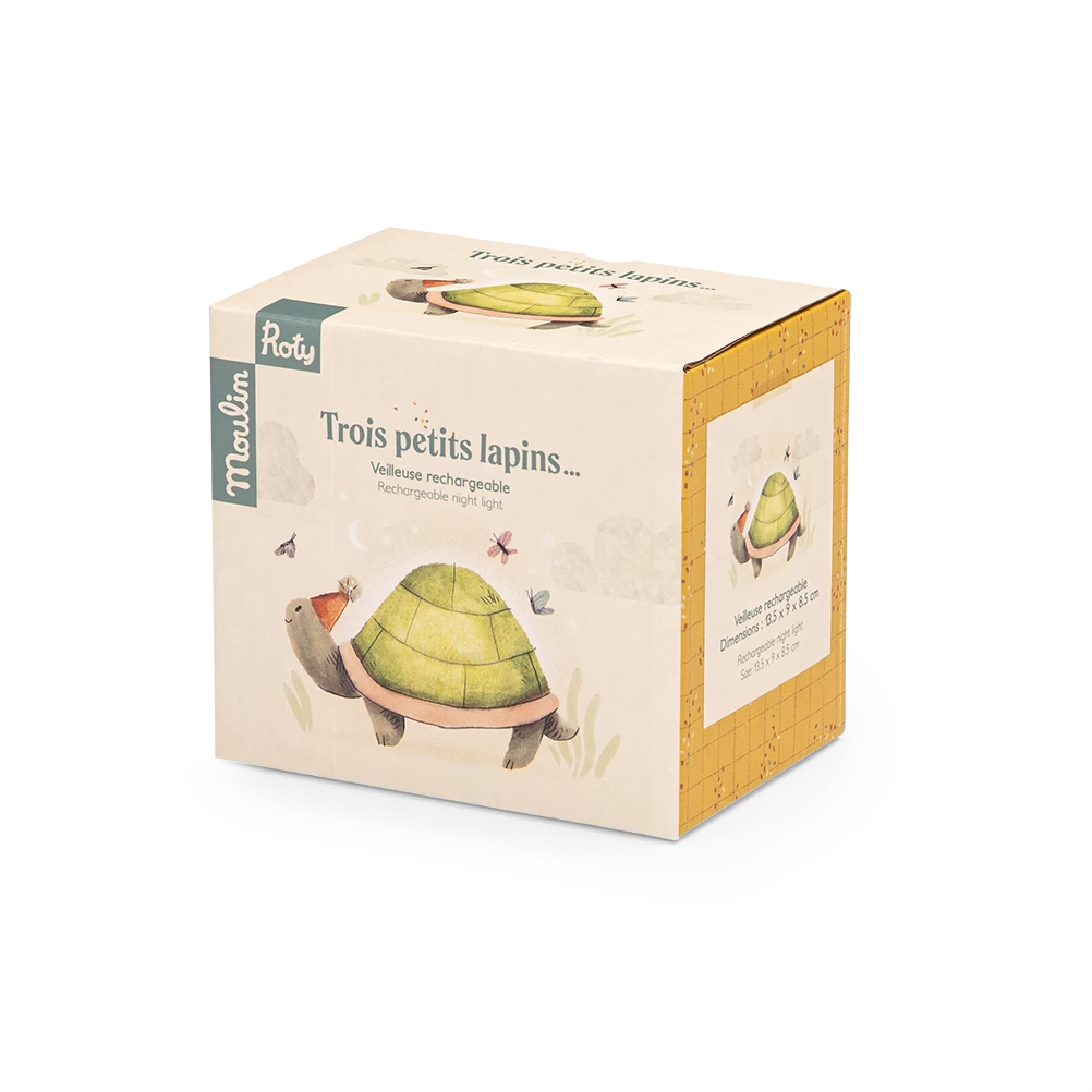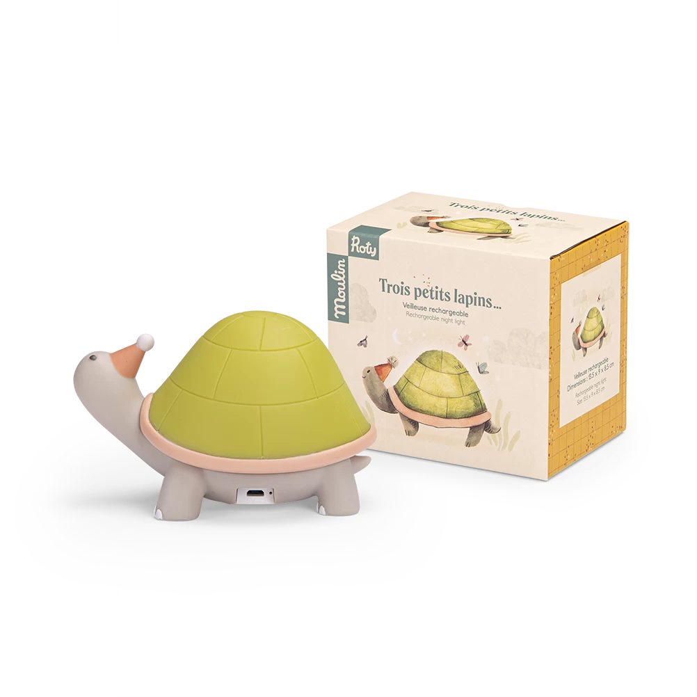 La veilleuse nomade tortue aidera bébé à voyager au pays des rêves en éclairant la chambre de sa lumière douce et tamisée. Avec une autonomie de 15h, elle se recharge en 3h par câble USB (inclus).